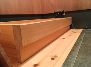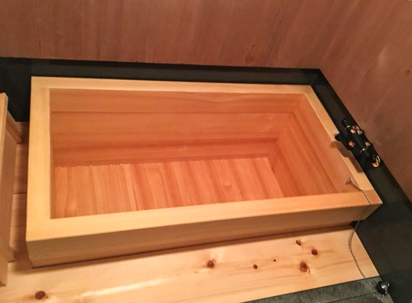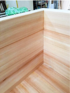 静岡県中伊豆産、樹齢300年を超えるヒノキの風呂です。