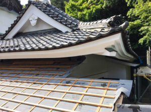 軒の出が5尺(150cm)にも及ぶハネの腐食など、開山堂の屋根替え工事をいたしました。
