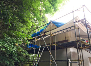 この後、瓦をはり、軒裏、軒先を漆喰で仕上げます。